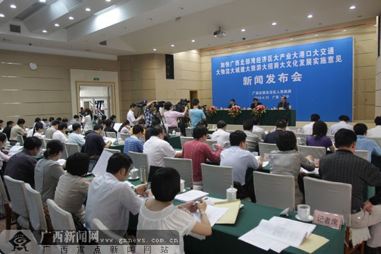 4月12日,《关于加快广西北部湾经济区大产业大港口大交通大物流大城建大旅游大招商大文化发展实施意见》(以下简称《意见》)新闻发布会在南宁举行。