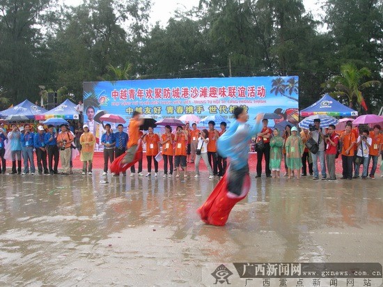 防城港:中越青年沙滩联谊 共跳“竹竿舞”(组图)