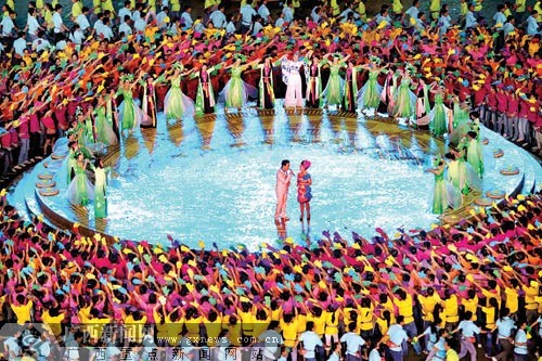8月27日晚,广西体育中心内华灯璀璨,歌舞飞扬,中越青年大联欢活动组委会在这里举行大演练。