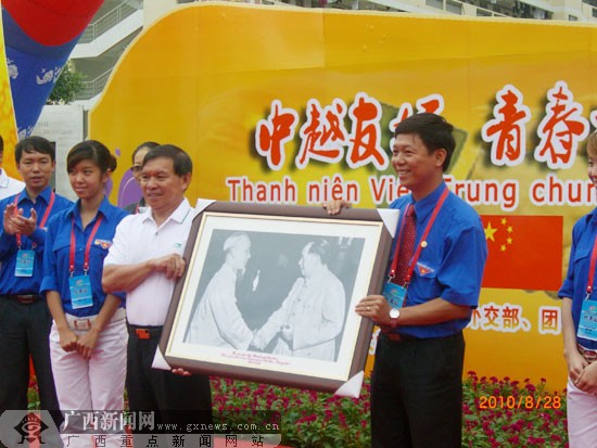 参观途中,中国青年学生还与越南青年代表合影留念。参加这次交流活动的中国青年学生黄梅君非常开心,她幸运的得到了一位越南青年代表赠送的徽章。黄梅君说,参加这次的活动,非常的有意义,促进了两国青年的友谊,两国的文化也得到了交流。通过和越南青年代表谈学习、生活的感受,增进对彼此的了解。