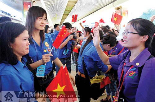 8月29日上午,中越两国青年在南宁火车站挥泪道别。记者 农如松摄
