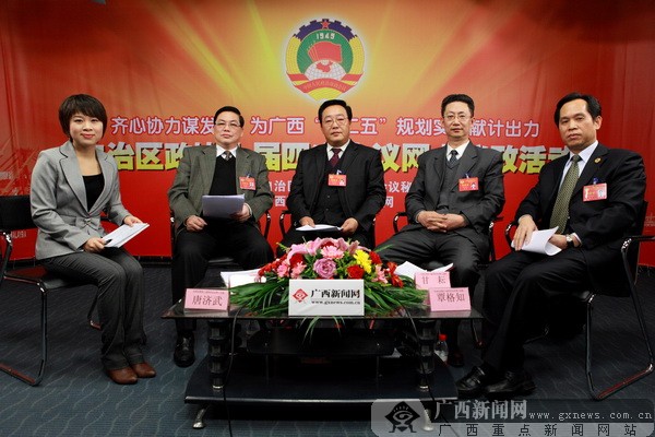 广西新闻网1月17日讯(记者韩倩)1月17日下午,一场以“齐心协力谋发展—为广西‘十二五’规划实施献计出力”为主题的政协委员网上议政活动在广西新闻网演播厅举行。自治区政协常委、民革广西区委会副主委、南宁市政协副主席唐济武,自治区政协常委、自治区财政厅干教中心主任甘耘,自治区政协常委、欧亚嘉华律师事务所主任张树国,自治区政协委员、自治区审计厅机关党委专职副书记覃格知做客广西新闻网,与网友交流,畅所欲言。