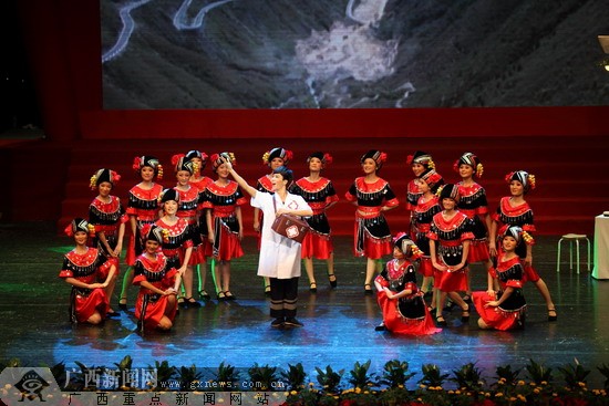 广西新闻网6月7日北京讯 6月2日,全国医药卫生系统纪念建党90周年文艺晚会《为了生命的托付》在北京21世纪剧院隆重举行,此台晚会近期将在中央电视台播放。由广西壮族自治区卫生厅选送的民族音乐情景剧《瑶山长明灯》从全国各省(区、市)卫生厅局选送的60多个节目中脱颖而出,入选晚会,并引发了观众的强烈共鸣。