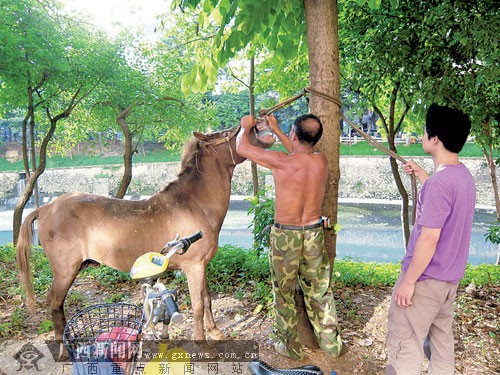花园上演人畜谋生艰难剧:马被晒晕服药之后又拉活 (2) |