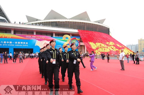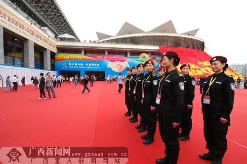 女警组成的安检队在南宁国际会展中心进行巡逻。广西新闻网记者 潘晓明 摄