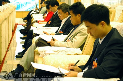 桂林市代表团在会议室召开会议。广西新闻网记者 潘晓明摄