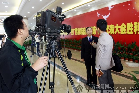 自治区第十次党代会开幕式结束后,各媒体记者抓紧时间采访代表。广西新闻网记者 伍永志摄 自治区第十次党代会开幕式结束后,各媒体记者抓紧时间采访代表。广西新闻网记者 潘晓明摄