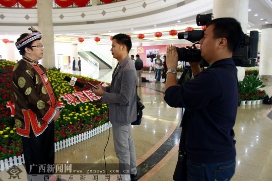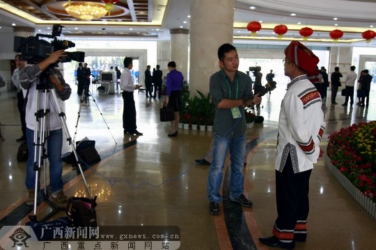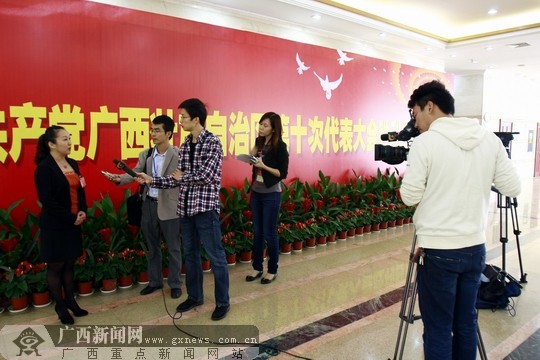 自治区第十次党代会开幕式结束后,各媒体记者抓紧时间采访代表。广西新闻网记者 伍永志摄