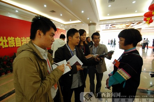 自治区第十次党代会开幕式结束后,各媒体记者抓紧时间采访代表。广西新闻网记者 伍永志摄 自治区第十次党代会开幕式结束后,各媒体记者抓紧时间采访代表。广西新闻网记者 潘晓明摄
