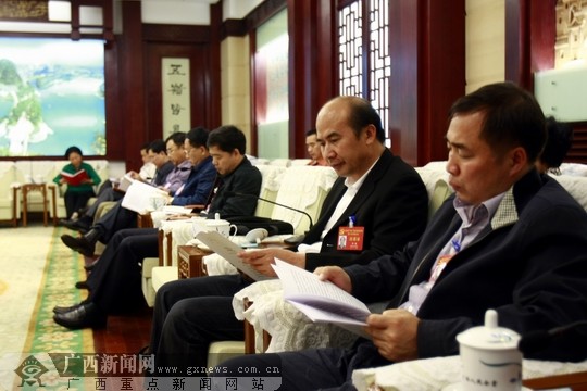 梧州市代表团代表讨论自治区第九届纪委工作报告。广西新闻网记者 潘晓明摄