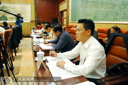 桂林市代表团代表讨论自治区第九届纪委工作报告。广西新闻网记者 伍永志摄