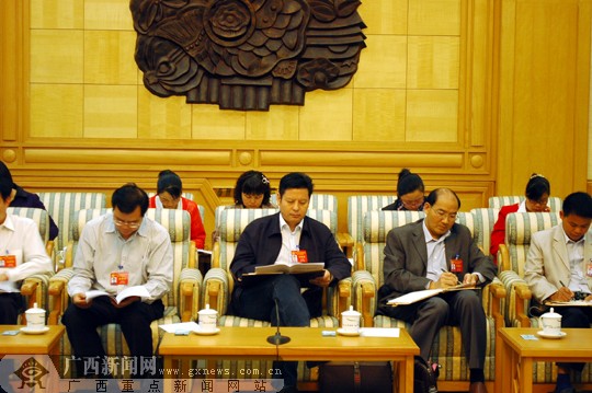 崇左市代表团代表讨论自治区第九届纪委工作报告。广西新闻网记者 潘晓明摄