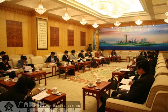 钦州市代表团在讨论。广西新闻网记者 王文英摄