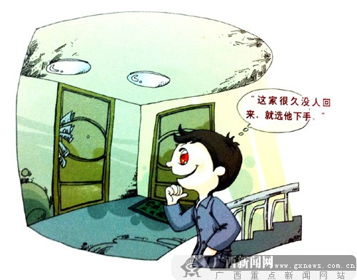 “这家很久没有人回来,就选他下手。”春节放假期间,市民家门口存积着大量的报纸和牛奶,这些都能引来盗贼。民警提醒一定要唱好“空城计”。如果出门时间比较长,可将门铃的电池取出来,家里的电话可以干脆来个挂断,以免长时间响铃暴露家中无人。请信得过的亲友、邻居常来照看一下,取走存积的报纸、牛奶。