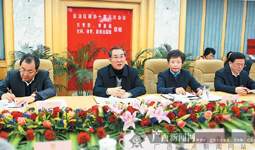 广西新闻网南宁讯 (记者罗猛)1月9日上午,自治区主席马飚参加自治区政协十届五次会议共青团、青联组,社科、体育、新闻出版组联组讨论,与委员们一起讨论政府工作报告,听取意见和建议。自治区政协党组书记陈际瓦一同参加讨论。