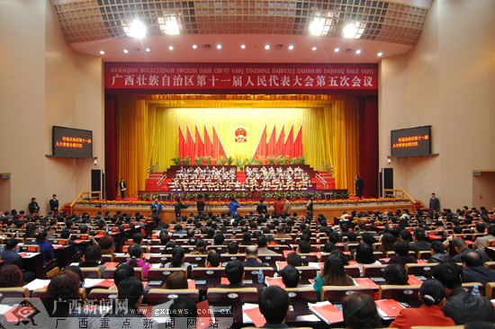 1月12日上午,自治区十一届人大五次会议举行第三次全体会议。广西新闻网记者 潘晓明摄