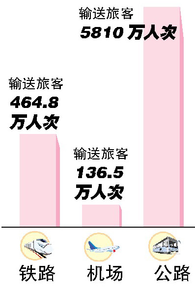 在今年春运中,公路客流量最大,运送旅客达5810万人次;铁路其次,464.8万人次;其后就是民航136.5万人次。今年铁路售票实行重大改革,推行实名制、网络售票、电话订票等措施。