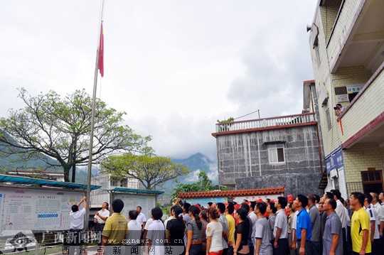 鲜艳的五星红旗伴随着庄严的国歌冉冉升起。广西新闻网记者 潘晓明摄