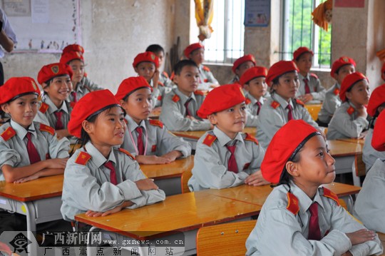 部队官兵为学生进行爱国主义国防教育。广西新闻网记者 潘晓明摄