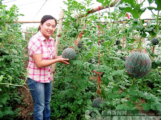 李欣蓉大棚里即将上市的小西瓜长势喜人。记者 覃理 摄