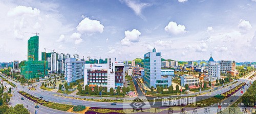 崇左建市9年,从一个小县城发展成为现代新城市。图为俯瞰崇左新貌。方安宁 摄