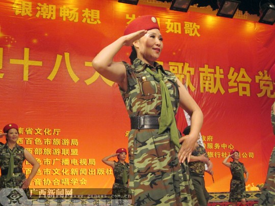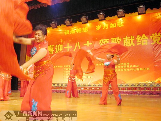 广西新闻网田阳10月18日讯(记者 伍永志)银潮畅想,岁月如歌。18日,“喜迎十八大 颂歌献给党”桂滇两地交流文艺演出在百色市田阳县举行。