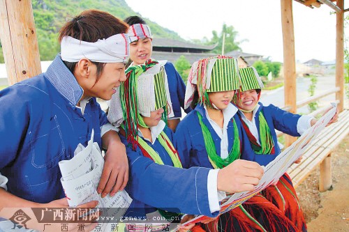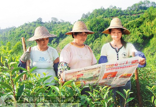 十一月八日,贺州市平桂管理区大平乡瑶族群众在阅读报纸中有关十八大的新闻。连日来,该市干部群众通过报纸、广播、电视、网络等各种媒体关注党的十八大召开。记者 蒋 勤摄
