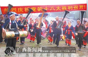 党的十八大胜利召开的喜讯传到金秀瑶族自治县大瑶山深处的六巷乡,各族干部群众欢欣鼓舞,奔走相告,掀起了学习宣传贯彻十八大精神的热潮。美丽的瑶家处处洋溢着欢声笑语,热烈庆祝党的十八大胜利召开。