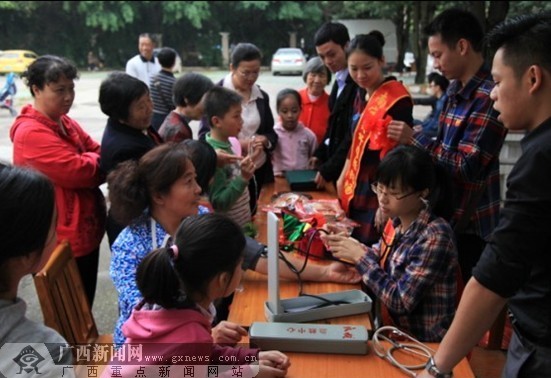 志愿者们为社区居民量血压,现场解答健康保健咨询。广西新闻网通讯员 杨立供图