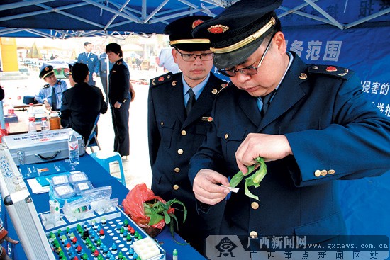 广西新闻网南宁讯 (记者雷倩倩 通讯员龙绍香)洗发水、打火机、白酒……你能分辨出这些日常商品的真假吗?3月8日,南宁市工商局经开区分局在南宁市荣宝华广场前,开展“3·15”国际消费者权益日宣传咨询活动,向市民传授辨别真假商品的小技巧,并对辖区内的农贸市场进行了蔬菜农药残留项目的检测。