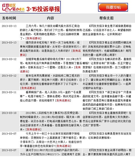 在青秀区梦之岛广场的“3•15”宣传咨询点上,记者将收集到的红豆社区网友所投诉和反映的部分问题,向青秀区工商局的相关人员进行现场咨询,并在跟帖中向网友进行了回复。