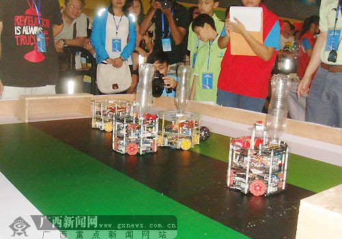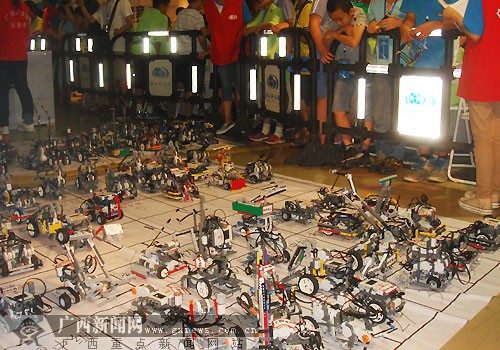 2013年广西青少年机器人竞赛共设有基本技能比赛、综合技能比赛、创意比赛、足球比赛、FLL工程挑战赛、VEX机器人工程挑战赛等六个项目,来自南宁、柳州、桂林、百色、梧州、贵港、贺州、来宾、崇左、玉林等10个地市的200多支青少年代表队、近500名参赛选手和教练员参赛比拼机器人技艺。据悉,竞赛组委会将选出各个项目组的冠军组成广西代表团参加今年7月在吉林长春举行的第十三届中国青少年机器人竞赛。