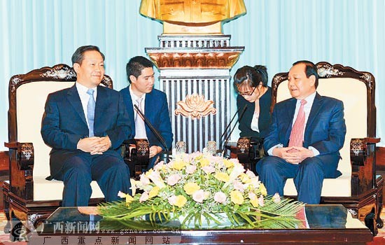 广西新闻网-广西日报胡志明市电 (记者黎攀)6月11日,广西与胡志明市签署备忘录,正式建立两区市友好合作关系。签约仪式前,自治区党委书记、自治区人大常委会主任彭清华分别在河内市与胡志明市会见越共中央政治局委员、胡志明市委书记黎清海,胡志明市人委会主席黎黄军。