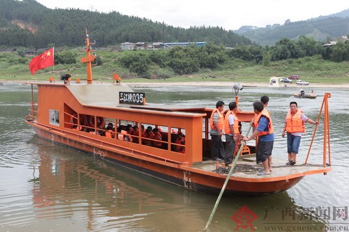 柳州海事局向三江县福禄乡仁里村民族示范渡口赠送的三江横035船。广西新闻网通讯员 覃海 摄
