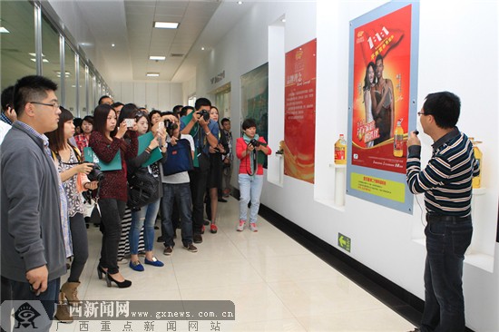 “潮涌北部湾”全国网络媒体新闻记者采访团一行,24日上午在防城港市大海粮油参观采访。 广西新闻网记者 邓昶摄