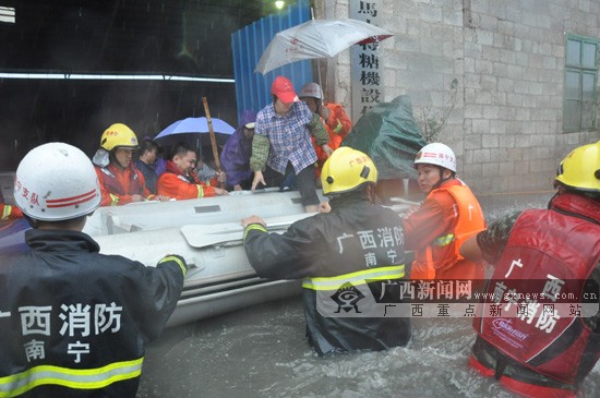 贵港一中学被洪水围困 一千余名师生被困(组图) 贵港市覃塘区三里镇三里一中整个校区被洪水围困,汪洋一片。 消防员利用冲锋舟进行救援 消防官兵现场涉水救援。 广西新闻网贵港11月12日讯(通讯员 杨文福)受强台风“海燕”影响,贵港市多地区普降暴雨,11月12日07时03分,贵港市覃塘区三里镇三里一中整个校区被洪水围困,最深水位达1.5米,学校有一千余名师生围困。目前受困人员已经全部安排在安全楼房的二楼以上,暂时没有危险。 据了解,接到警情后,当地政府率领武装部、消防部门在校园逐一搜救,排查还有无人员被困。经救援,目前学校的受困师生已经被转移到安全的楼房上。学校也已经全部停课,师生食宿暂时没有问题。 >>>详细 "海燕"携风带雨突袭邕城 消防员疏散被困人员81人 消防员转移受困市民。 广西新闻网南宁11月11日讯(通讯员 陈阳)今年第30号台风“海燕”于11日11日进入广西南宁市境内,造成市内多处积水,部分市民被困。截至11日18时,南宁消防部门共接到台风灾害报警9起,出动车辆15辆次,出动人员99人次,疏散被困人员81人,转移群众455人。 11日中午12时30分左右,消防部门接到一卡车司机报警,报警人称他的车辆被困水中,要求消防人员救援。消防员依照报警人所述地址来到了北湖北路王屋村附近,经一番寻找,终于发现有一辆小型的蓝色卡车停在积水中间,两名男子坐在驾驶室内。消防员请男子下车躲避到安全区域,但是车上男子表示,积水太深不愿下车。虽然当时积水仅仅到小腿,消防员还是将其中一名男子背到了无积水的区域。 正在消防员准备撤离的时候,突然发现附近一个斜坡下有一块低洼地,两三排仓库矗立其中,已经被积水淹至大腿。暴雨导致的大量积水不停地从斜坡上向低洼处汇集,水势上涨得非常快。消防员改变了撤离的决定,深入仓库搜查,才发现房子内有多名市民留守。留守的人表示,他们不想离开自己的房子。消防员讲明了形势的严峻,要求所有人必须立即撤离该低洼地带,并首先背出了几名妇女和儿童。水位仍在快速地上涨,水已经漫过了消防员的腰部,随后增援的冲锋舟赶到,消防员小心扶着居民坐上冲锋舟,由4个人站在水中,前后左右扶稳船体以防倾斜,一步一步地将30多名被困人员转移到了安全地带。 >>>详细 台风“海燕”12日进入梧州 局部将降大暴雨 广西新闻网梧州11月11日讯(记者梁馨予)今年第30号台风“海燕”已于11日上午9点钟进入广西境内。记者从梧州市气象台获悉,受台风“海燕”外围环流影响,10日14时至11日14时,梧州市大部出现了中雨到大雨,局部暴雨。最大降水出现在蒙山县文圩镇,为64.5毫米,较强降水主要出现在蒙山县及苍梧县北部等地区。 预计“海燕”将以每小时15公里左右的速度向北偏东方向移动,11日傍晚以后逐渐转为东偏北方向,强度逐渐减弱,并将于12日上午进入梧州市境内。梧州市气象部门预计,12日,受“海燕”减弱后的低压环流影响,梧州市大部有大雨到暴雨,局部大暴雨,13日起降水明显减弱,同时受北方冷空气南下影响,各地气温明显下降。 梧州市气象部门根据最新的气象资料分析,预计,12日,梧州市阴天大部有大雨到暴雨,局部大暴雨。气温:北部13-17℃,南部17-23℃;13日,受北方冷空气南下影响,全市阴天有小雨。气温:北部12-17℃,南部14-21℃;14日,全市小雨转多云。气温:北部13-18℃,南部15-23℃。 梧州市气象台提醒,近期冷空气活动频繁,天气逐渐转凉,气温较低,市民应注意做好防寒保暖工作。 >>>详细