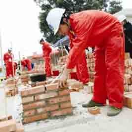 左手拿砖,右手用铲铺水泥,动作娴熟不失节奏感,眼前这一幕是记者昨日在广西首届农民工技能大赛上砌筑工赛场上看到的。据了解,此次大赛由自治区人社厅和自治区总工会联合举办,共有家政服务员、电焊工、工具钳工、钢筋工、砌筑工等5个工种,分理论考试和实际操作技能竞赛进行。全区14个地市选拔出154个代表参赛,进行5个工种“状元”的角逐。