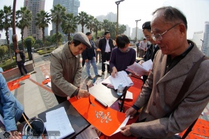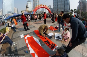广西新闻网南宁1月18日讯(记者邓昶 实习生乔明宣 褚瑞懿)18日上午,广西“和谐建设在基层”2014年(甲午)年春联征集评选暨“文化惠民·免费书写赠送春联”活动在南宁金湖广场举办。该活动由自治区党委宣传部、自治区文明办、自治区文联和广西中华文化促进会共同举办。