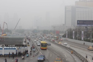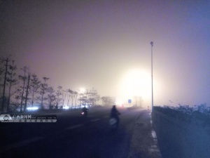 3月12日早晨,南宁市白沙南建路口被大雾笼罩能见度较低。