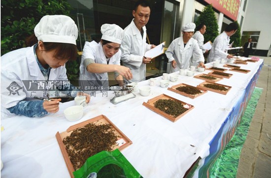 在中国凌云白毫茶产品擂台赛现场,记者看到多名身着白衣的评茶专家依次对各家选送参评的白毫茶展开评选。据了解,评茶专家将从色、香、味、汤等方面对茶产品进行评定,参评的茶产品将按严格和统一的标准进行评比。本次擂台赛的最终结果将于25日上午揭晓。