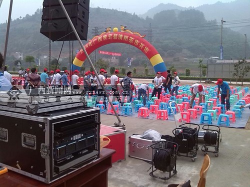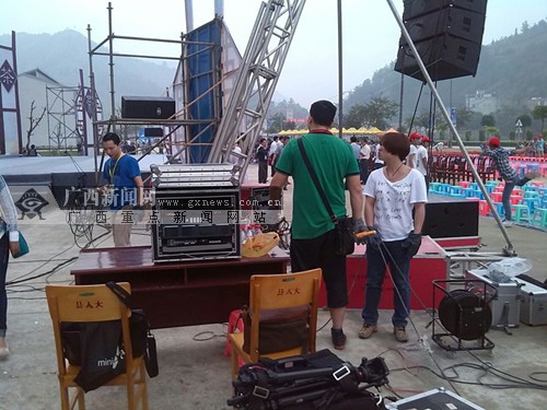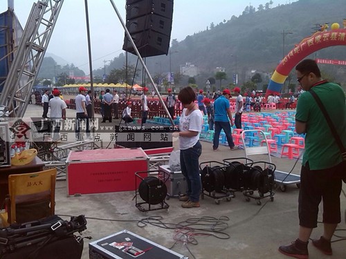 工作人员正在准备直播的设备。广西新闻网记者 文亮 摄