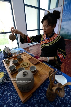 一名女子在茶道茶艺表演赛上表演茶艺,赢得阵阵掌声。 广西新闻网记者 胡雁 摄