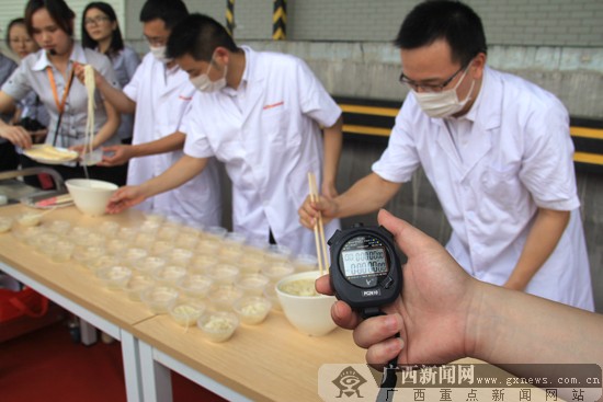 工作人员展示90秒即熟的新品挂面。广西新闻网记者 宋瑶 摄