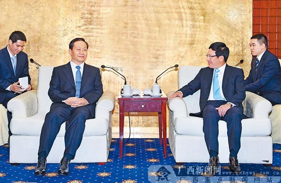 广西新闻网-广西日报南宁讯(记者魏恒 黎攀)9月15日,自治区党委书记、自治区人大常委会主任彭清华在南宁会见率团出席第十一届中国-东盟博览会和商务与投资峰会的越南副总理兼外交部长范平明一行。