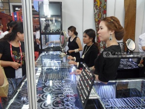 高清:逛老挝商品展示区归来 帅哥美女比玉饰抢镜 (1/12)