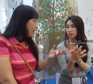 9月16日下午,在第11届中国-东盟博览会老挝商品展示区里,美女、帅哥导购吸引了记者的目光,他们有的会说一点简单的普通话,有的需要翻译才能与顾客交流。但是凭着他们的微笑服务以及吸引眼球的商品,展区顾客盈门。