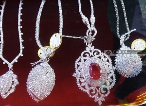 一家老挝珠宝展示区,商品琳琅满目。广西新闻网 记者 刘晓彤 摄