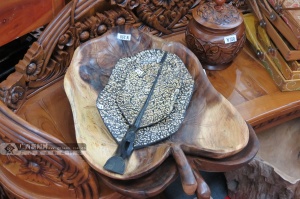 用柚木做的水果盘。广西新闻网记者 张璐摄