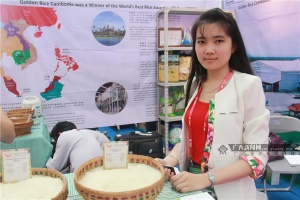 柬埔寨姑娘向记者介绍大米的特别之处。广西新闻网记者 刘文韬 摄