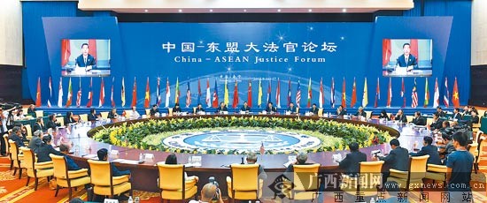 9月16日下午,中国-东盟大法官论坛在南宁开幕,中国首席大法官、最高人民法院院长周强,自治区党委书记、自治区人大常委会主任彭清华出席开幕大会。记者 黄 克/摄